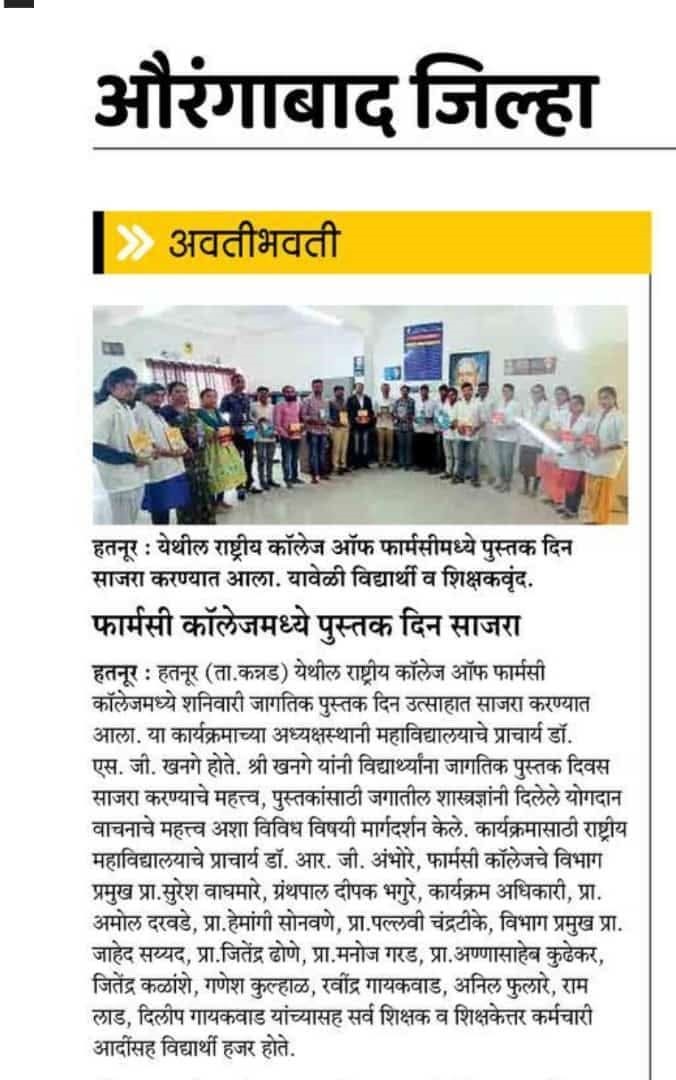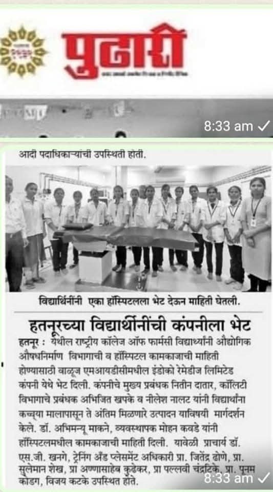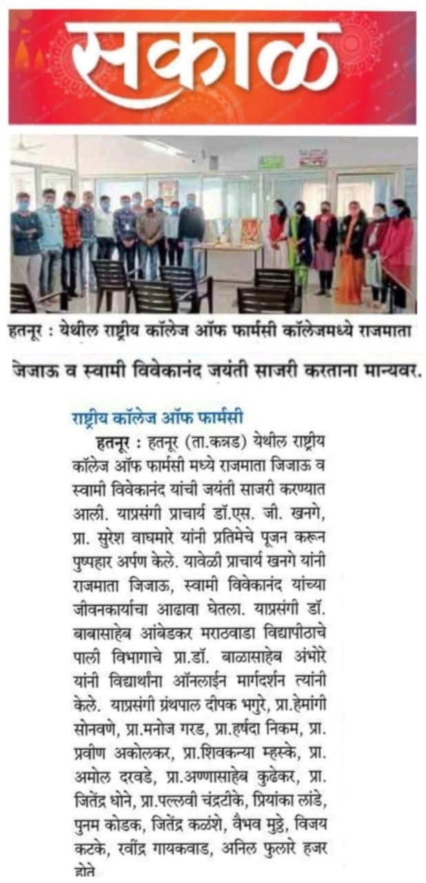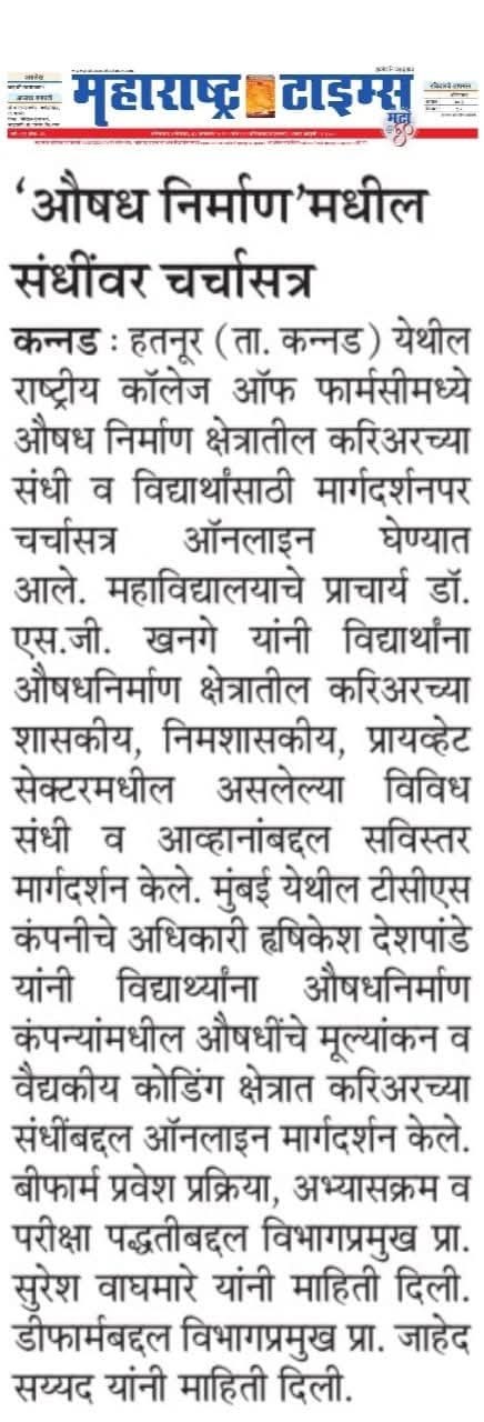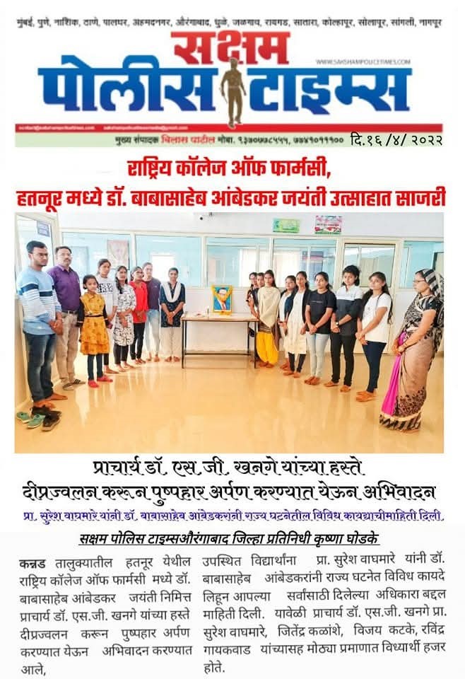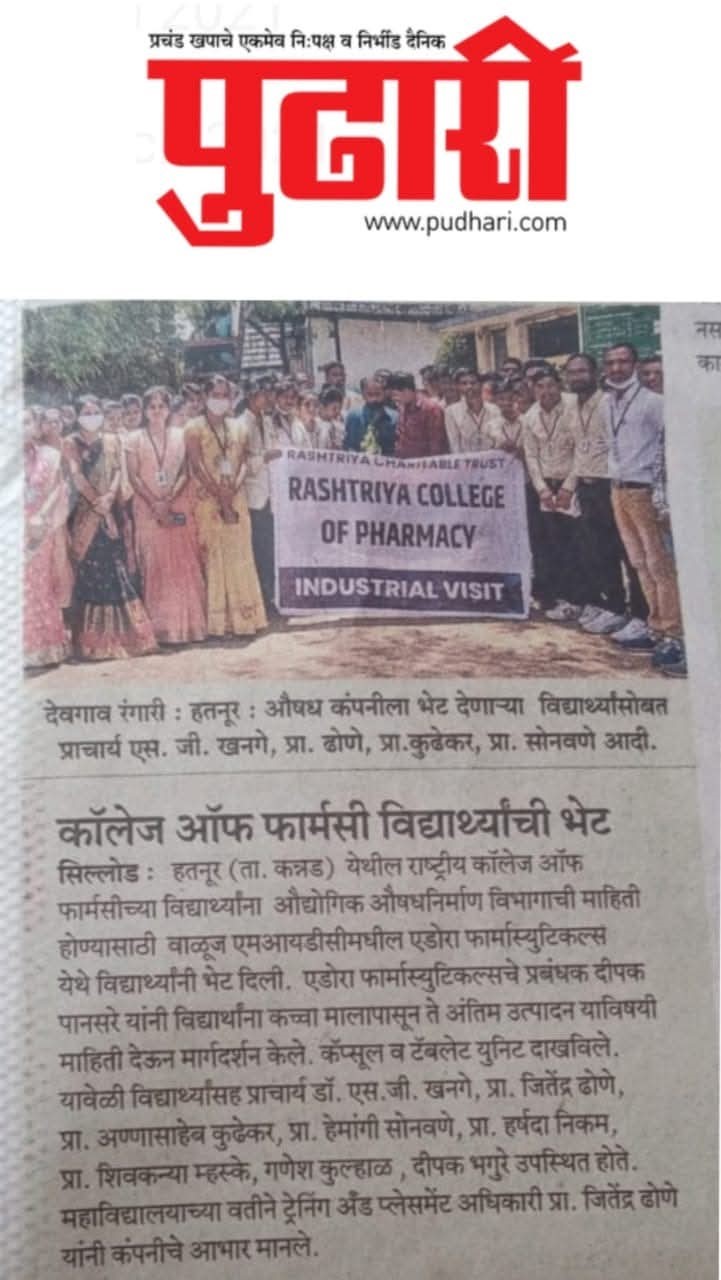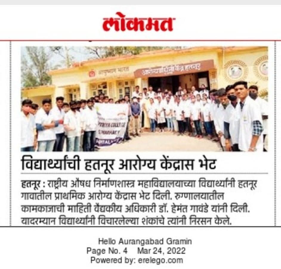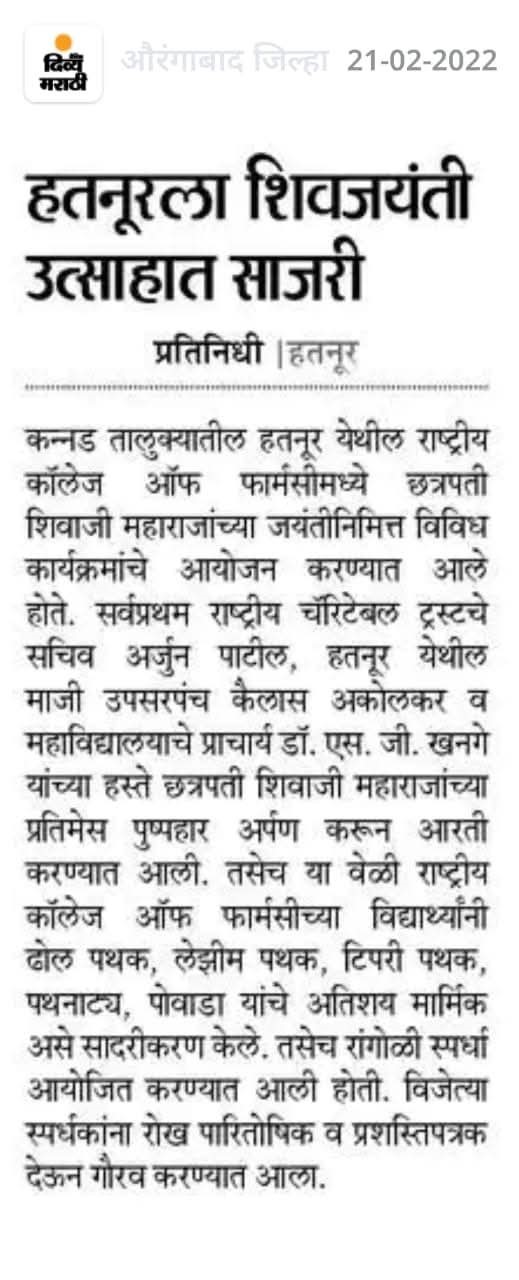 Hatnur Tq. Kannad, Dist. Aurangabad - 431103 Approved by AICTE, New Delhi, DTE, Mumbai, PCI, New Delhi and Affiliated to DBATU, Lonere, Raigad and MSBTE, Mumbai.