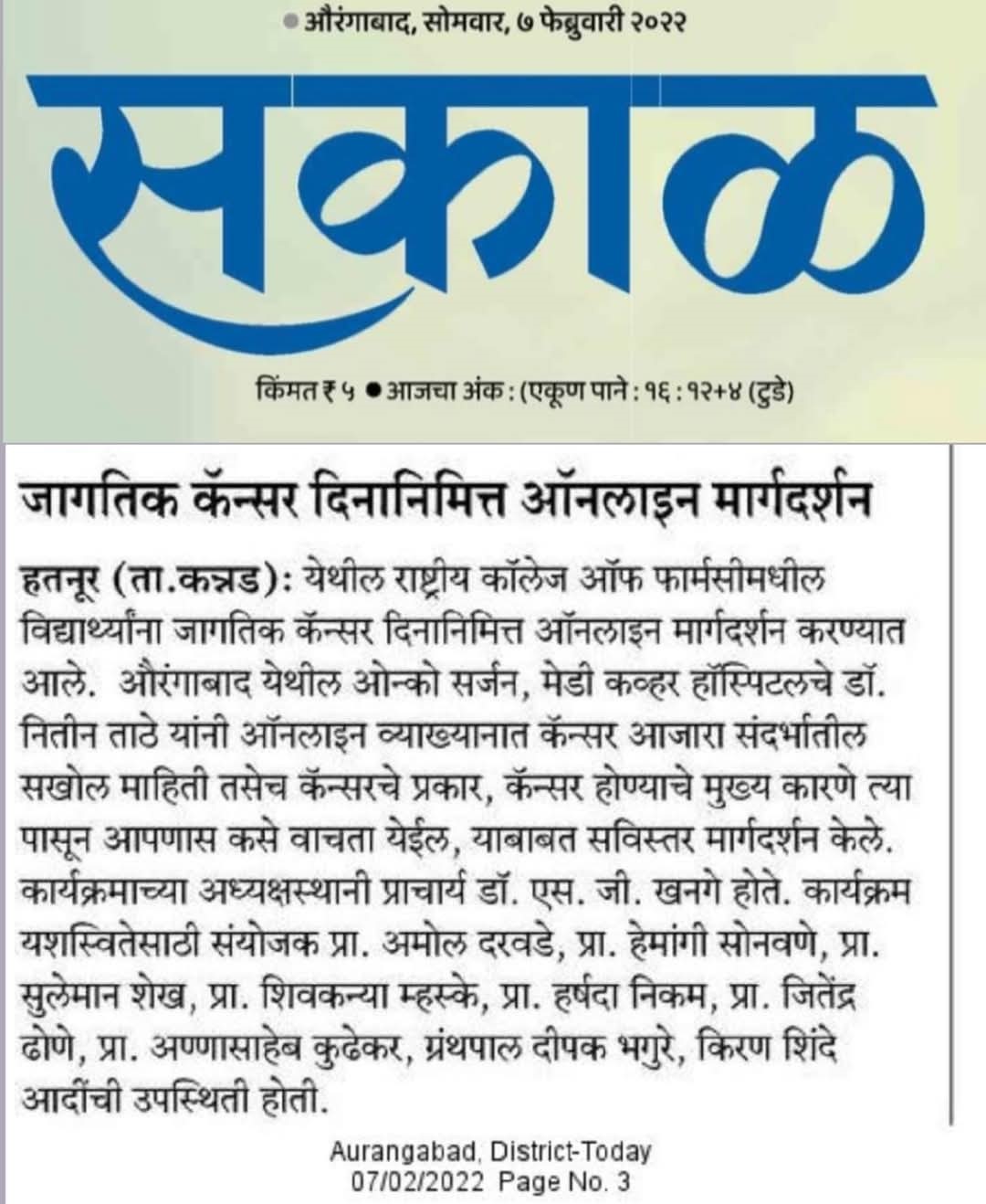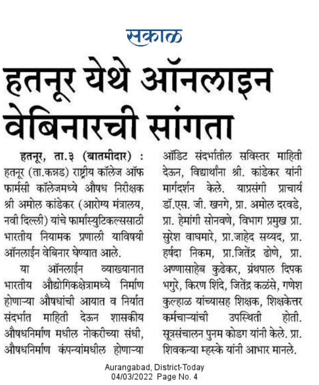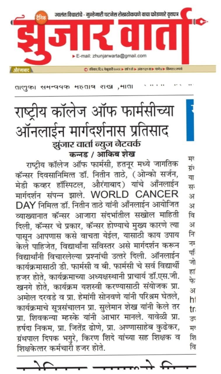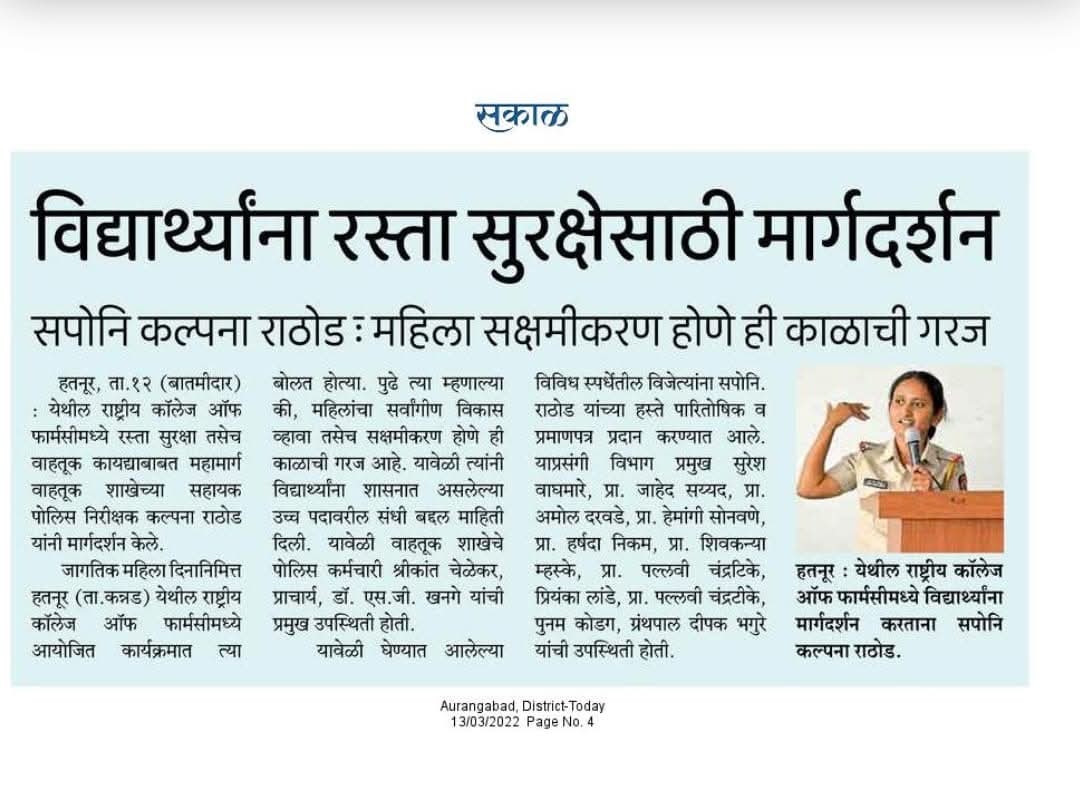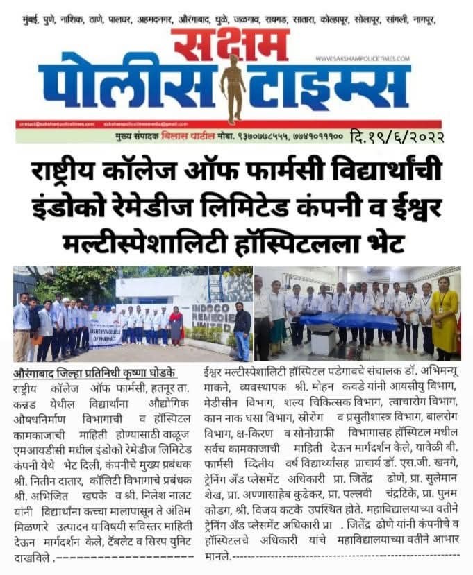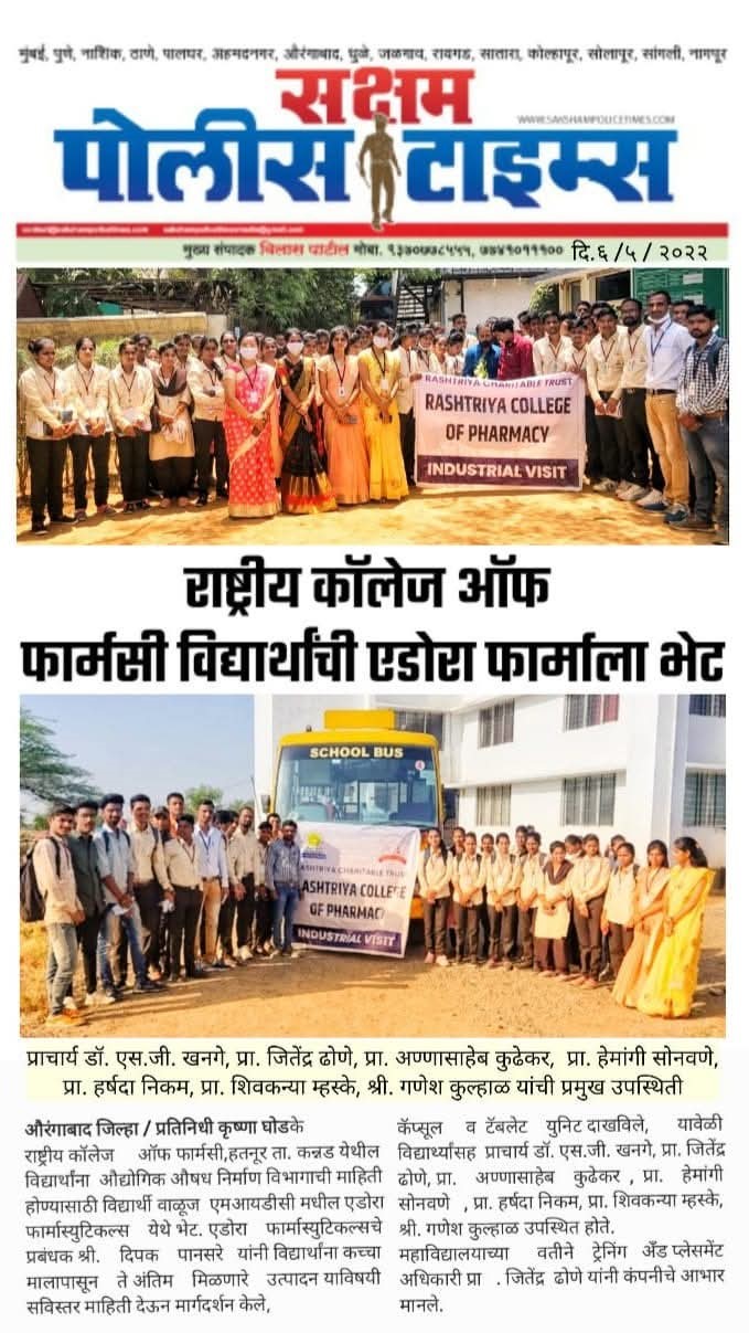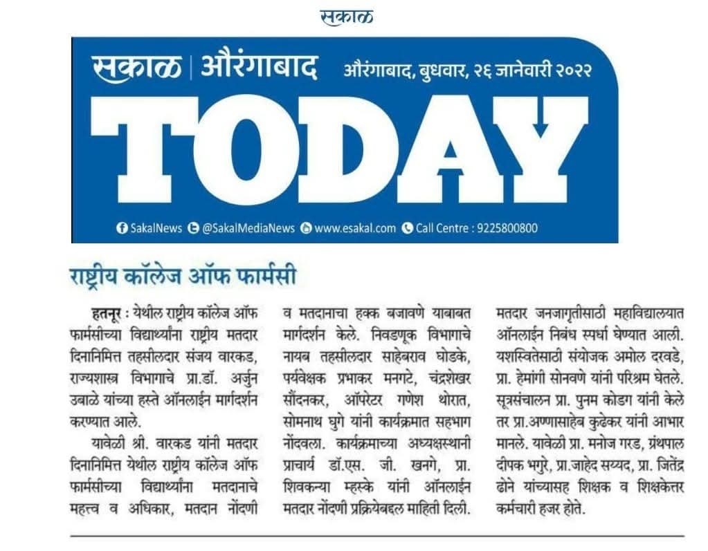 Hatnur Tq. Kannad, Dist. Aurangabad - 431103 Approved by AICTE, New Delhi, DTE, Mumbai, PCI, New Delhi and Affiliated to DBATU, Lonere, Raigad and MSBTE, Mumbai.